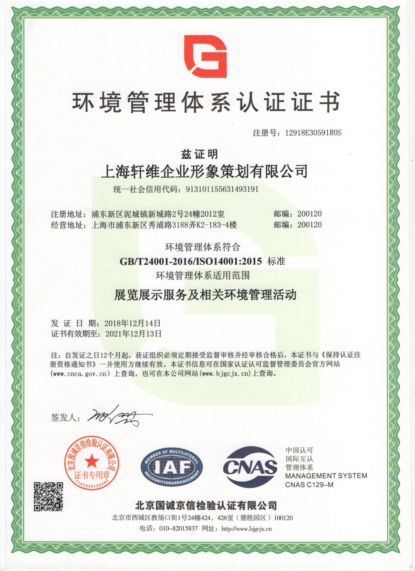 環境管理體系證書