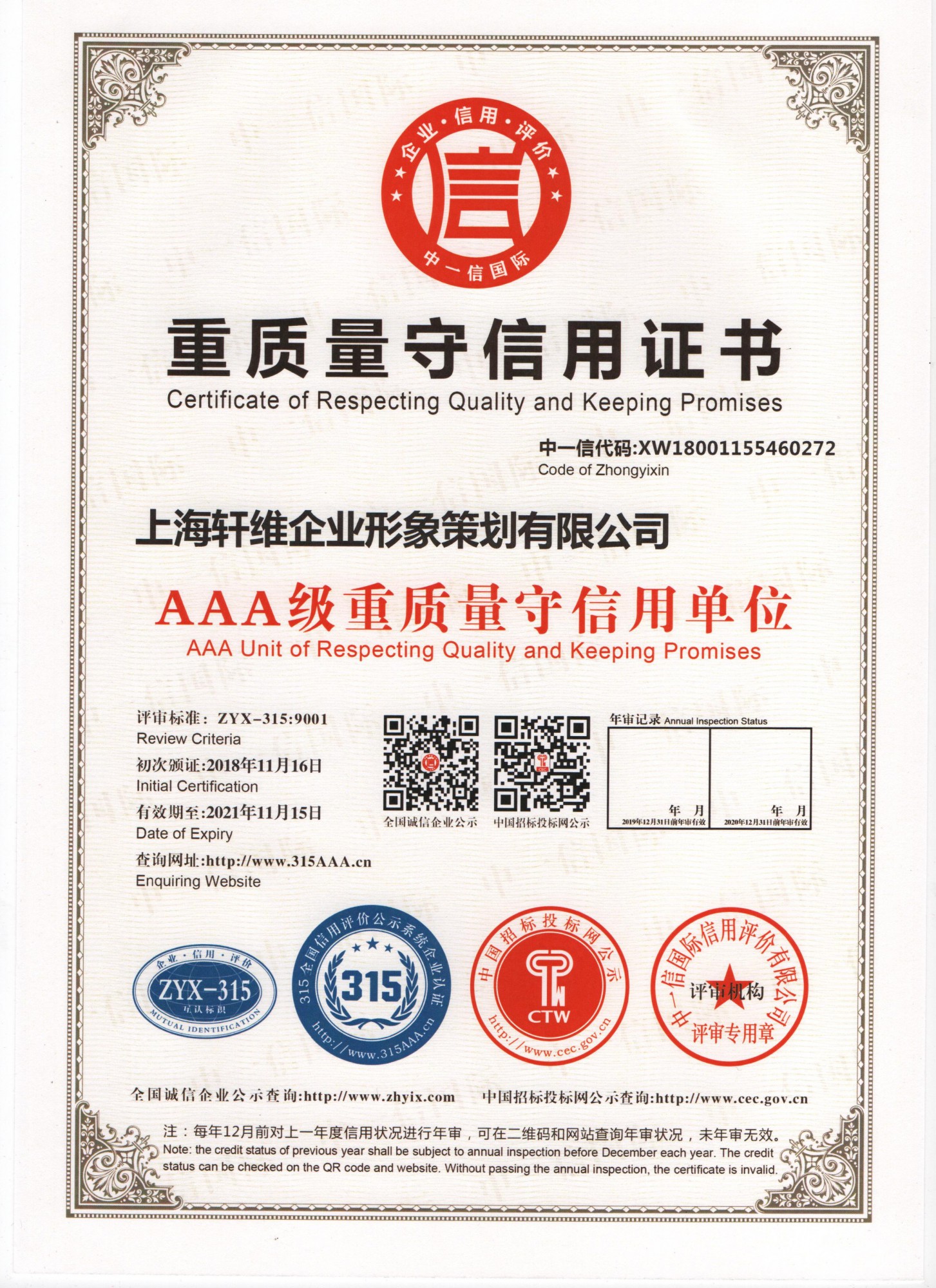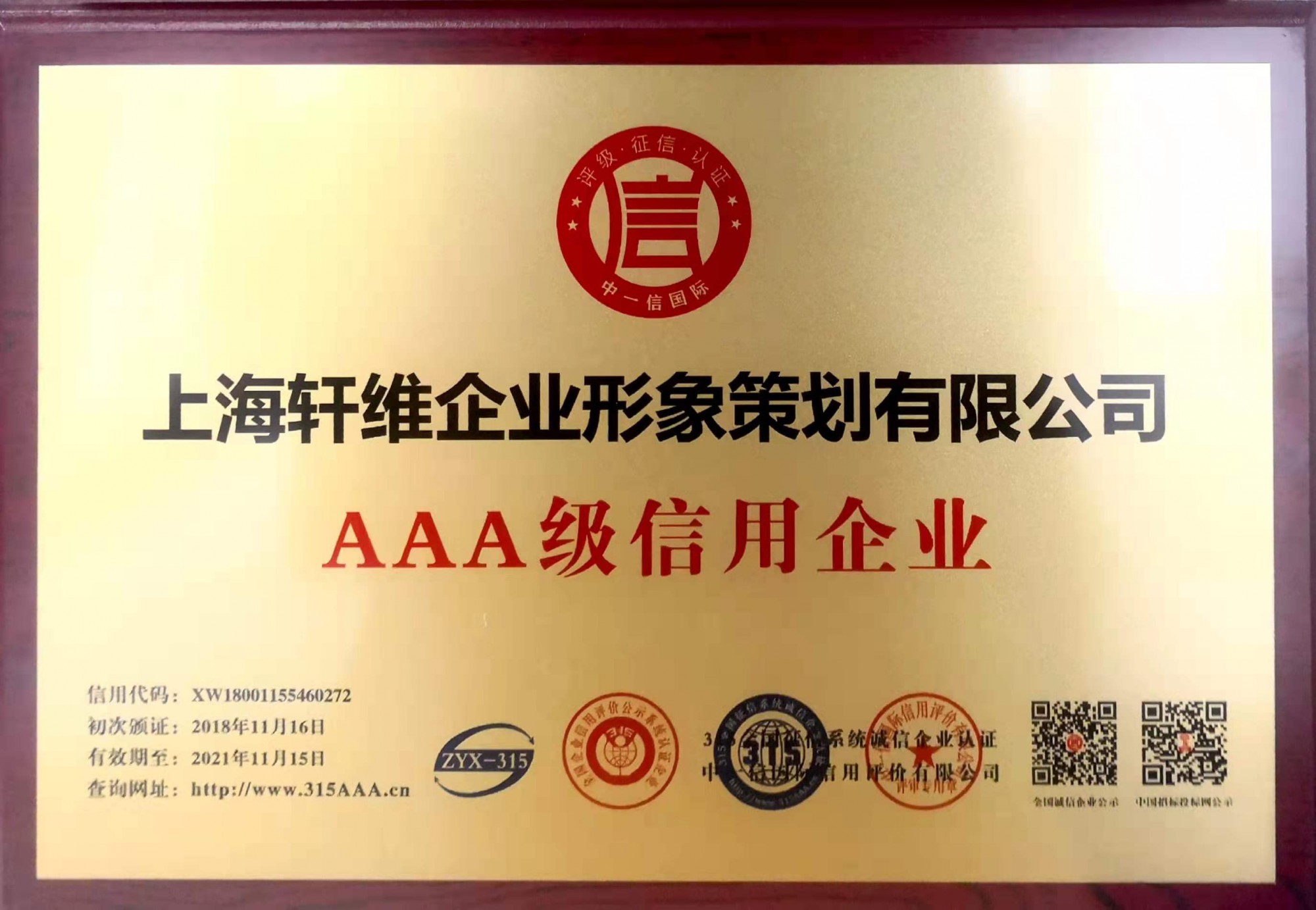 3A信用等級證書