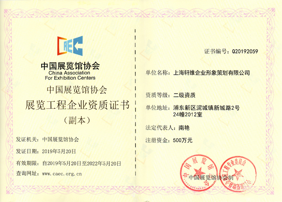 中國展覽館協會貳級資質